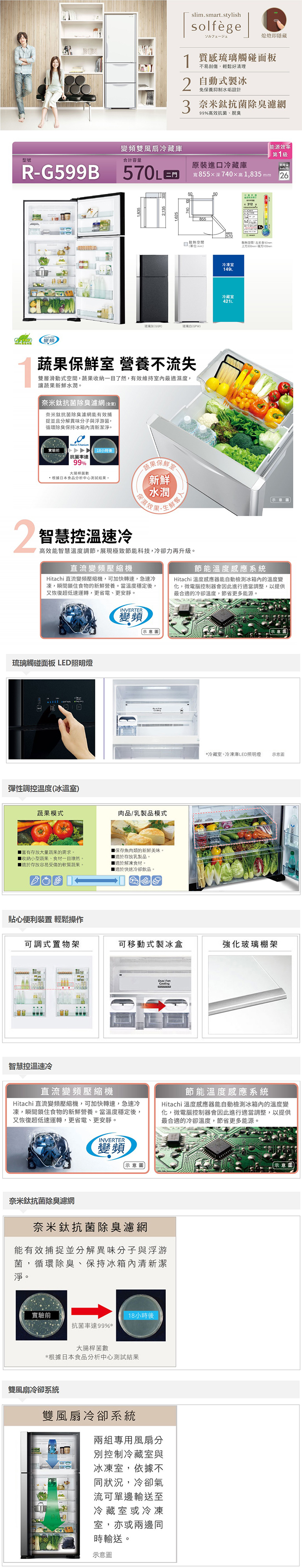 [HITACHI 日立家電]570公升 雙門變頻冰箱-琉璃白/琉璃灰 RG599B