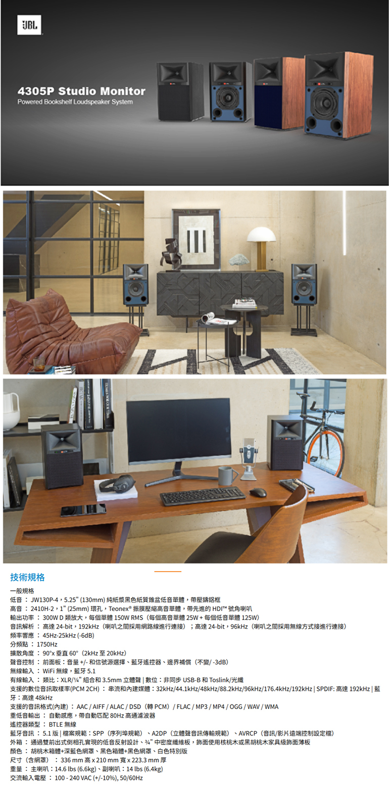 • 300W 總系統功率,高音單元 25W + 低音單元 125W