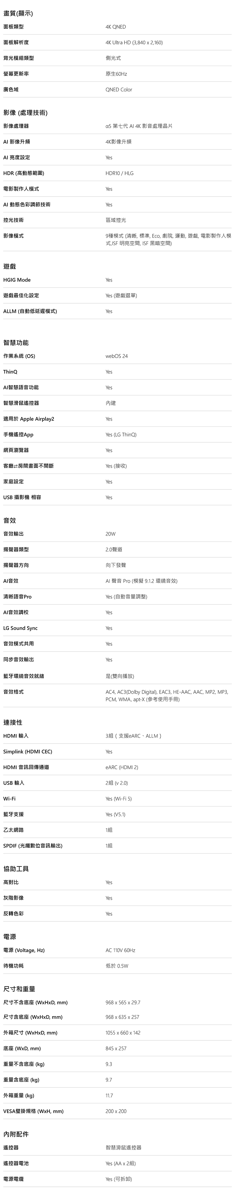 【不含安裝】[LG 樂金]43吋 QNED 量子奈米 4K AI 語音物聯網 43QNED80TTA