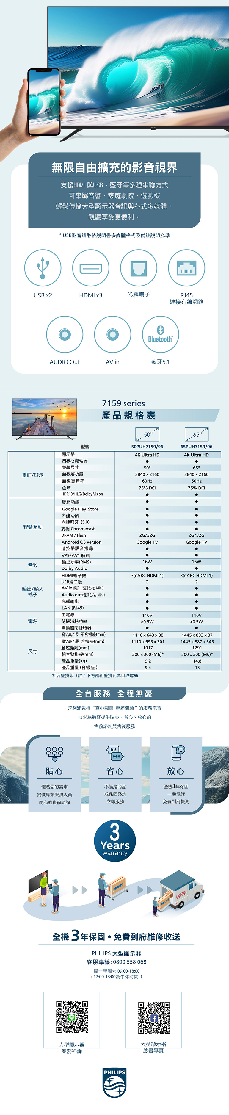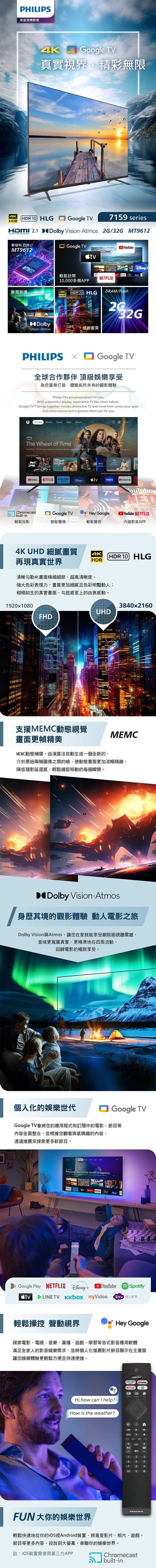 [PHILIPS 飛利浦]55型 4K Google TV 顯示器 55PUH7159