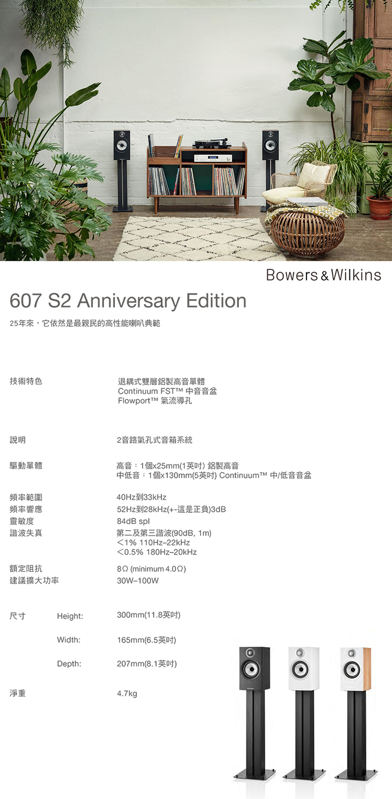 607 S2 週年紀念版書架式揚聲器提供與其緊湊外形相悖的功率和規模,採用 Continuum™ 音盆和更新的分頻器,以確保出色的分辨率和音樂性。非常適合立體聲或家庭影院環繞聲使用。