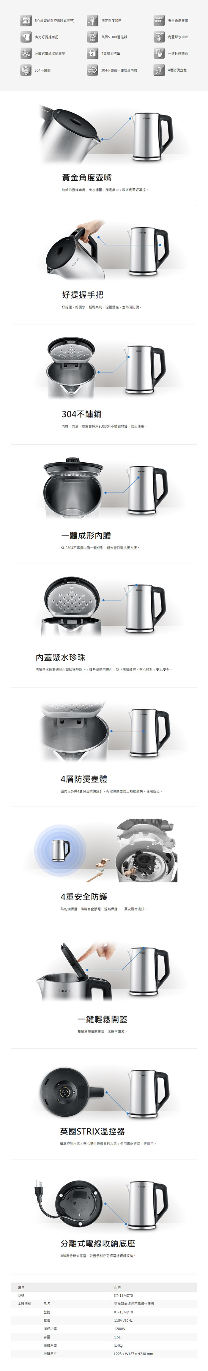 -黃金角度壺嘴,好提握手把,4層防燙壺體