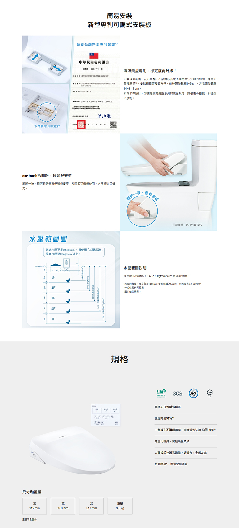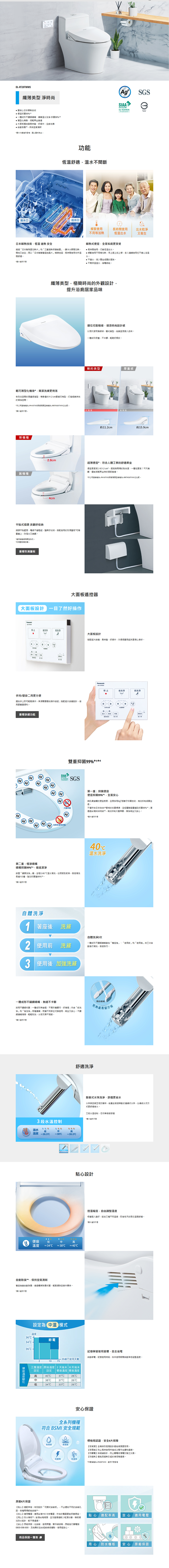 ● 一體成形不鏽鋼噴嘴、噴嘴溫水洗淨 抑菌99%*⁴