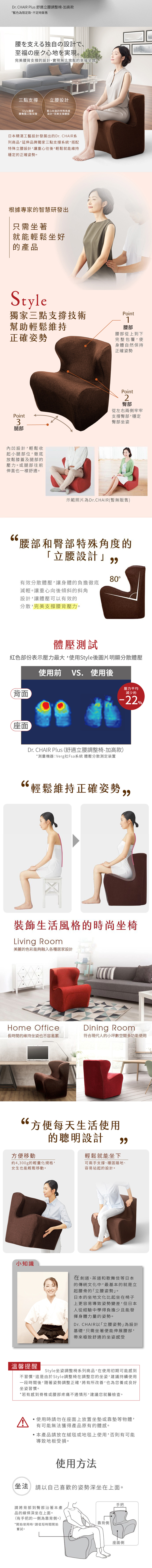 Dr. Chair Plus 舒適立腰調整椅不只給您完美支撐腰背的頂級享受,日式時尚設計更讓居家空間質感大提升。
