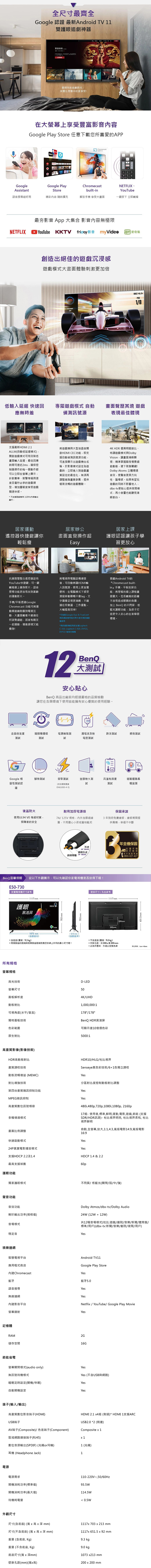 【不含安裝】[BenQ 明基]50型 Android 11 追劇護眼大型液晶 E50-730