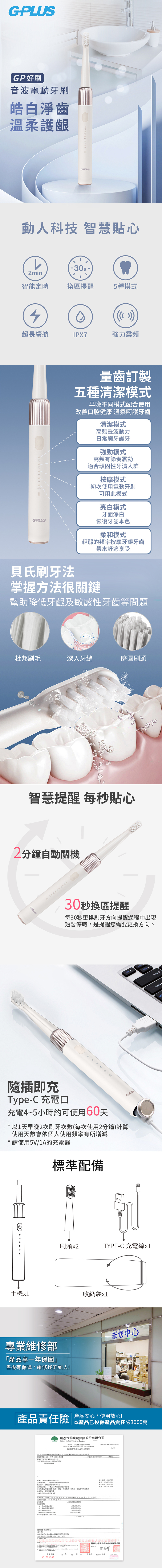 產品內容:主機*1/USB充電線*1/刷頭*2/說明書*1