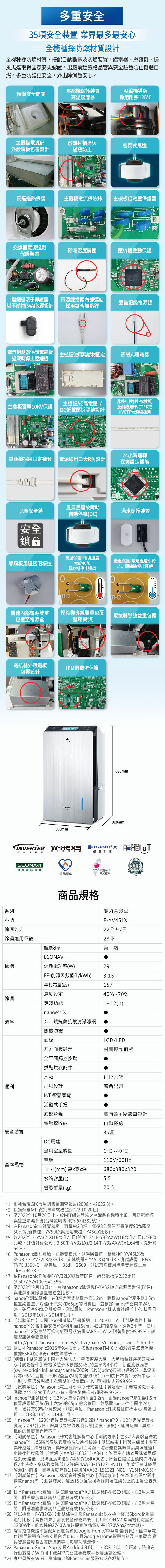 ● 除濕能力 22公升/日(室溫27°C/相對濕度60%)