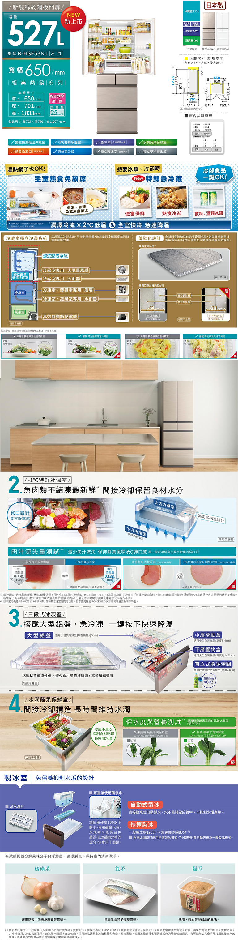 ・智慧保鮮:-1°C特鮮冰溫室、熱食免放涼功能,快速抑菌鎖鮮