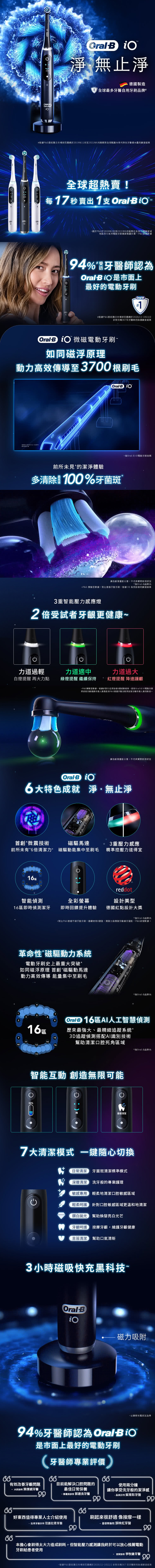 日常清潔、深層清潔、敏感專用、輕柔呵護、鑽白拋光、牙齦呵護、舌苔清潔七大模式