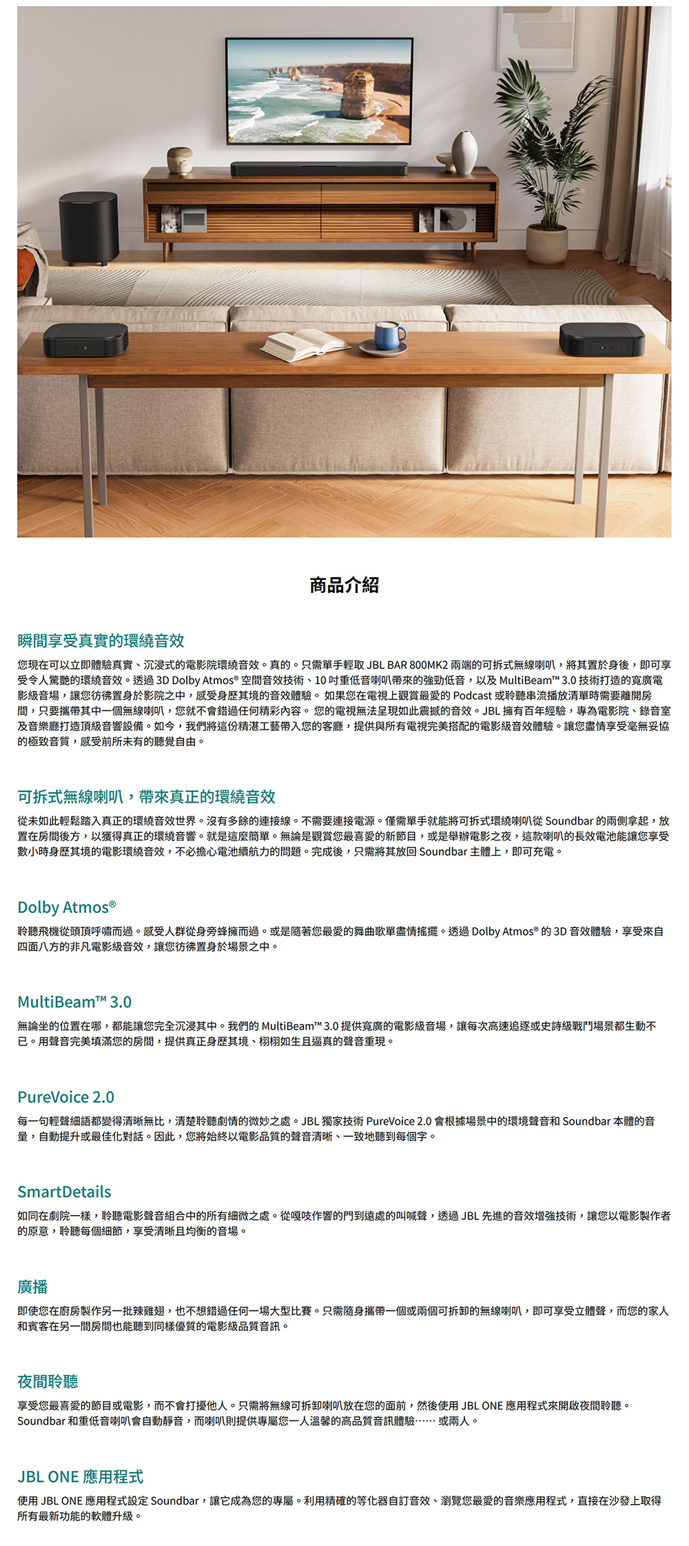 780 瓦最大輸出功率和 10 吋無線重低音喇叭