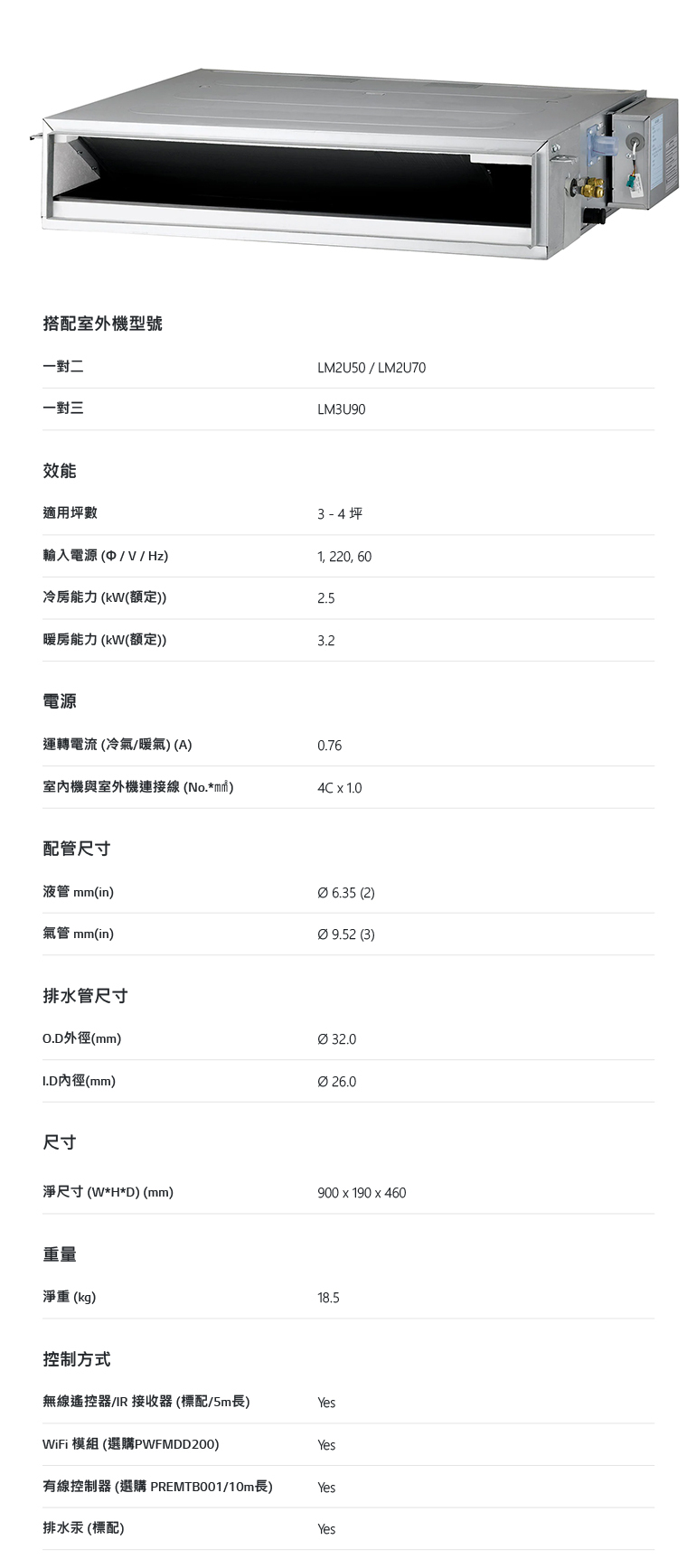 【不含安裝】[LG 樂金]3-4坪 吊隱式冷暖型 DUALCOOL WiFi 雙迴轉一對多變頻空調 室內機 LDN25