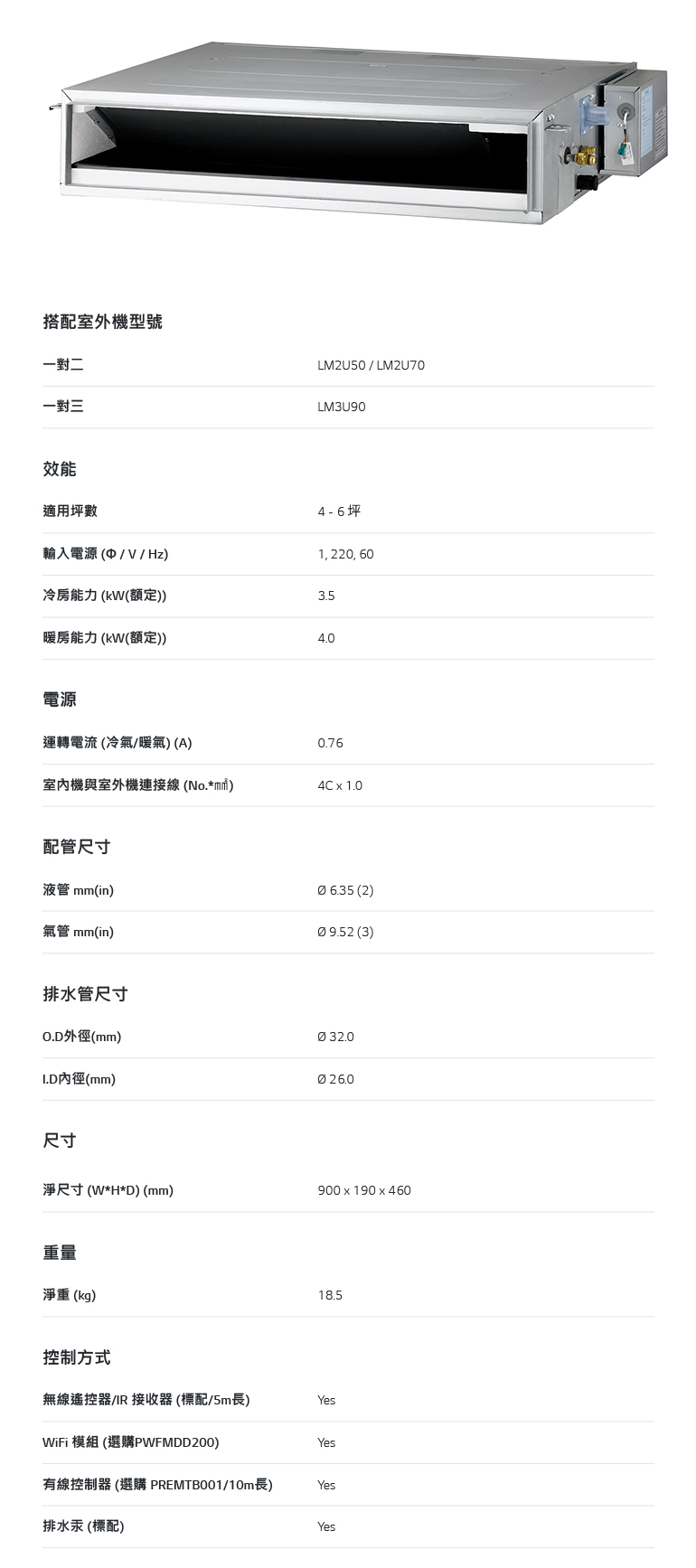 【不含安裝】[LG 樂金]4-6坪 吊隱式冷暖型 DUALCOOL WiFi 雙迴轉一對多變頻空調 室內機 LDN36