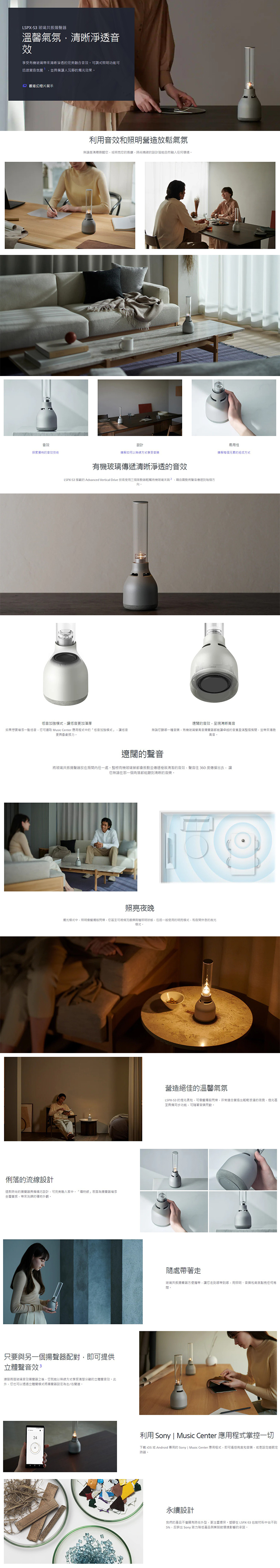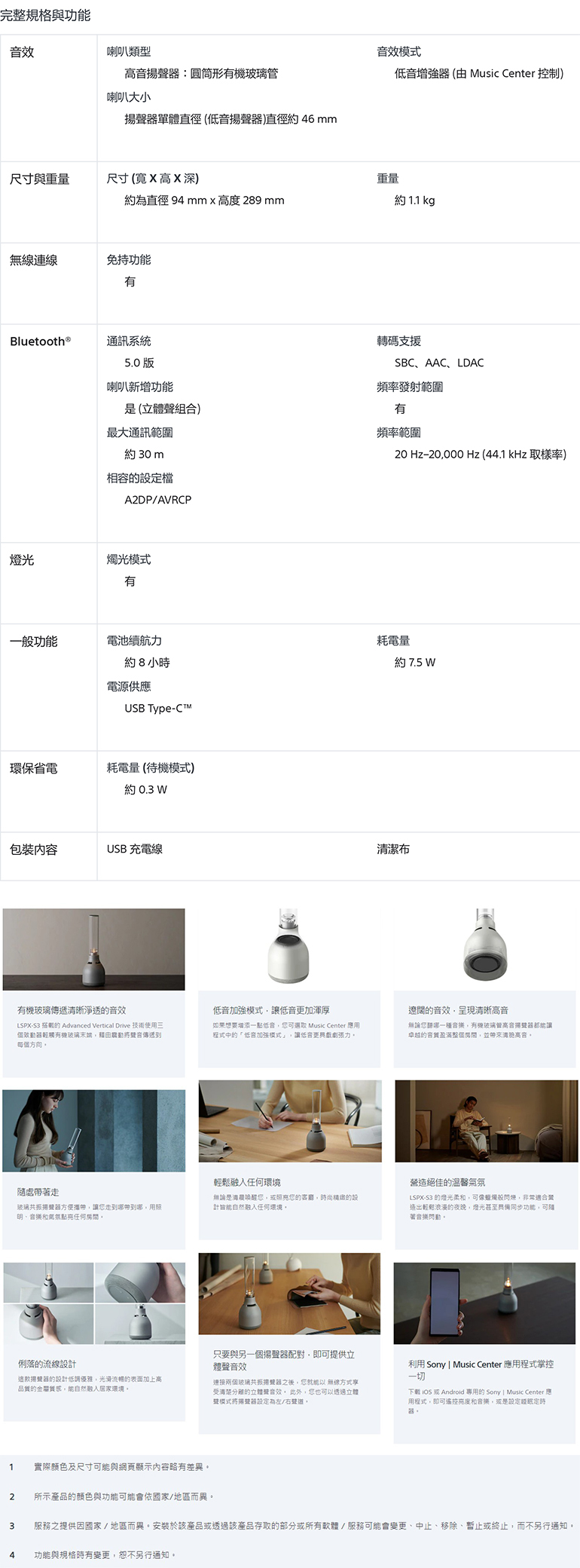 ● 有機玻璃管高音喇叭可提供清晰高音與 360 度環繞音效