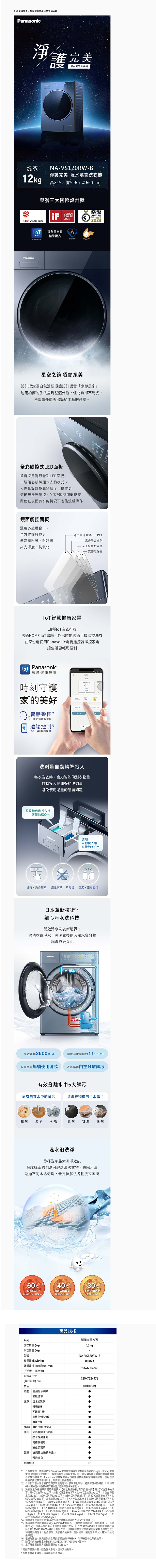 ● 洗衣 12kg+乾衣 10kg (NA-VS120RW-B+NH-VS100HP-B)