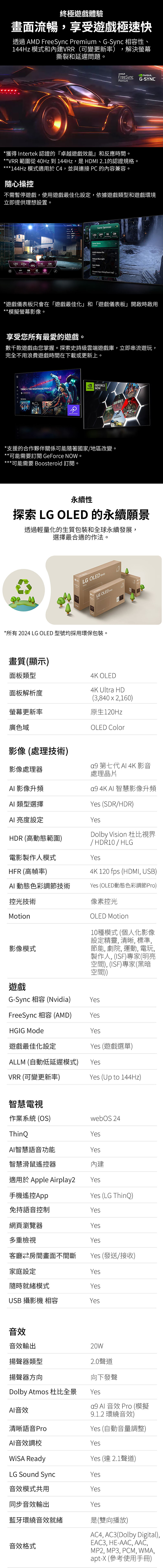 支援杜比視界及全景聲(Dolby Vision/ATMOS)、VRR、G-Sync 和 Freesync,強化影音及遊戲表現