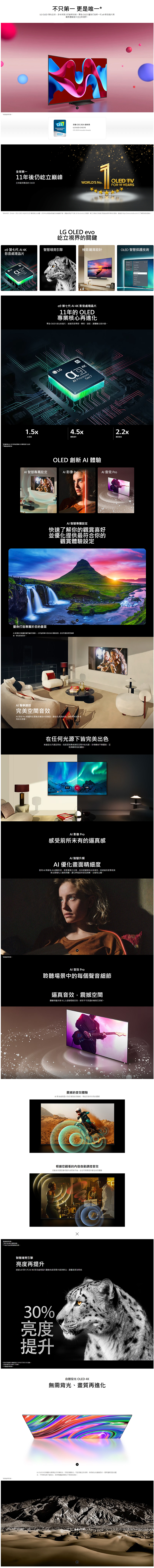 LG OLED evo 4K 自體發光科技,智慧增亮引擎提升亮度讓畫面更立體