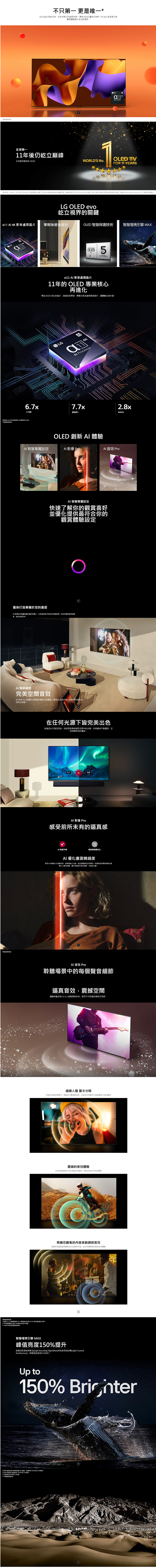 LG OLED evo 4K 自體發光科技,智慧增亮引擎 MAX 峰值亮度提升150%