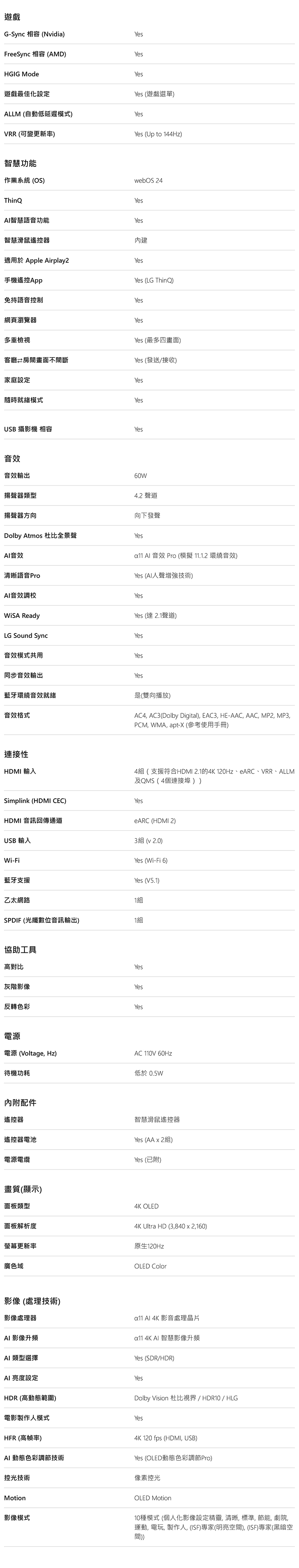 支援杜比視界及全景聲(Dolby Vision/ATMOS)、VRR、G-Sync 和 Freesync,強化影音及遊戲表現