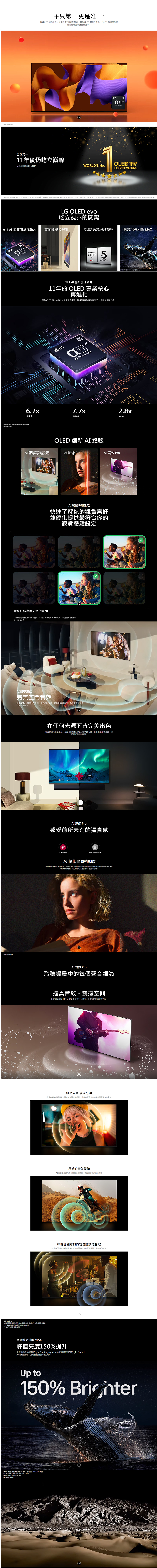 LG OLED evo 4K 自體發光科技,智慧增亮引擎 MAX 峰值亮度提升150%