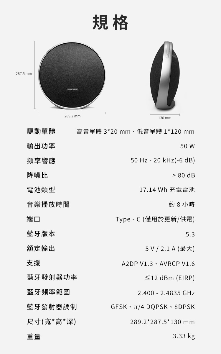 • 播放時間長達 8 小時