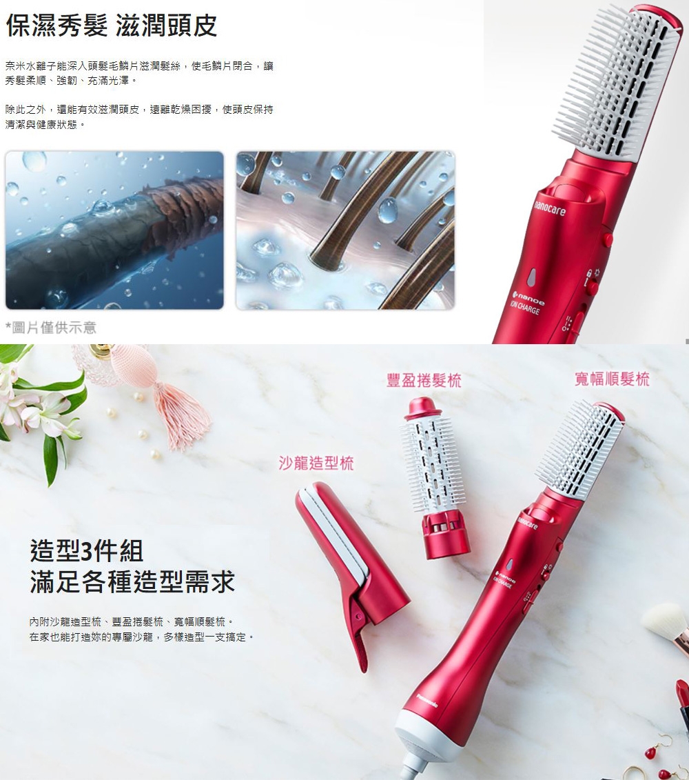 ● 內附沙龍造型梳+豐盈捲髮梳+寬幅順髮梳