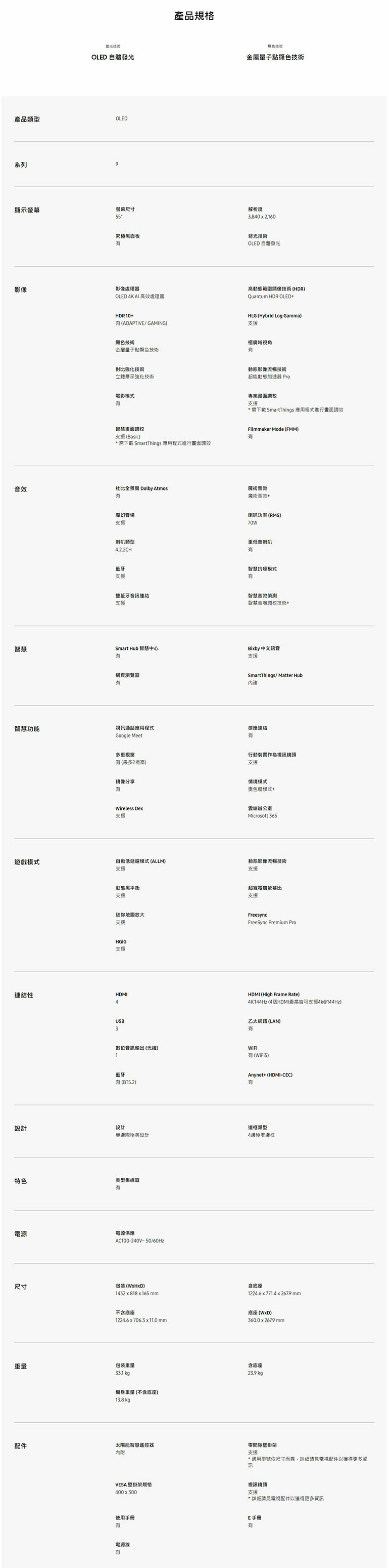 【不含安裝】[SAMSUNG 三星]55型 OLED 4K量子電視 QA55S95CAXXZW / QA55S95CA