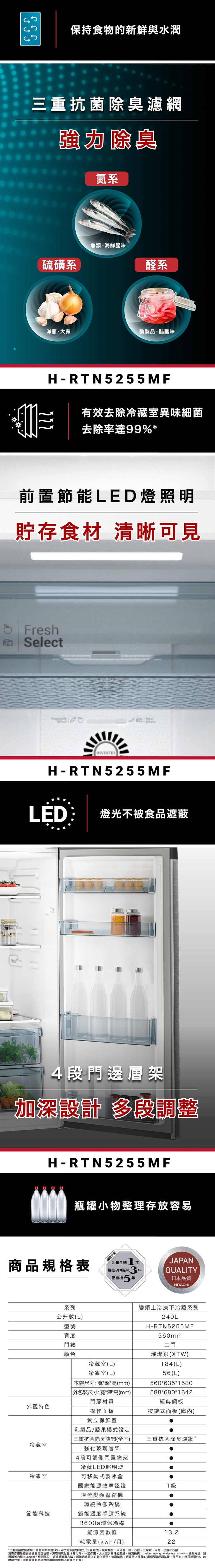 ・三重抗菌除臭濾網,去除異味與細菌,保持冰箱內部潔淨。