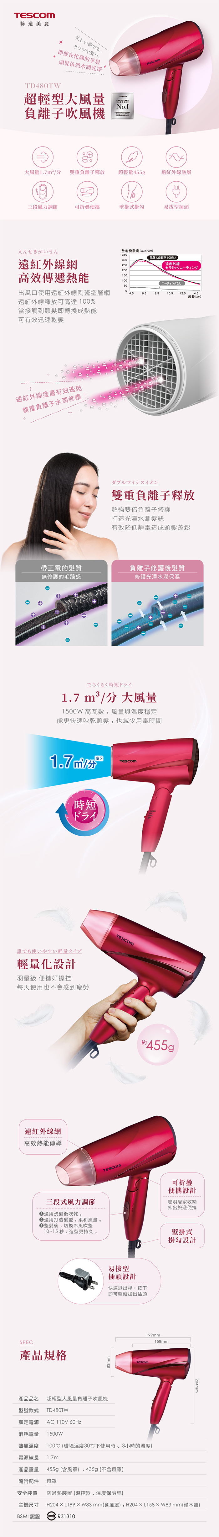■ 雙重負離子釋放,滋潤髮絲減少毛躁