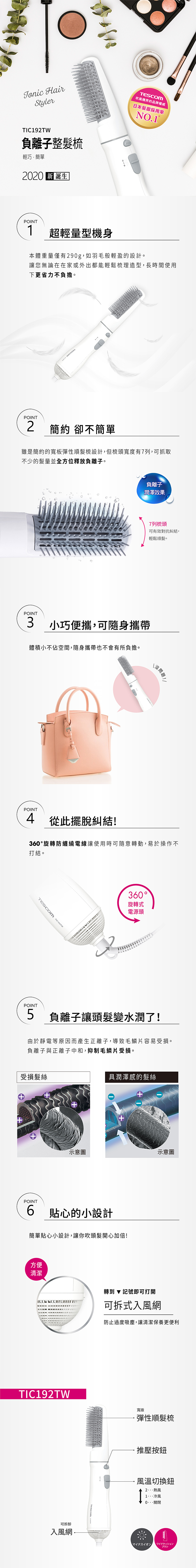 ■ 寬板順髮梳設計,附遮幅式彈性梳頭