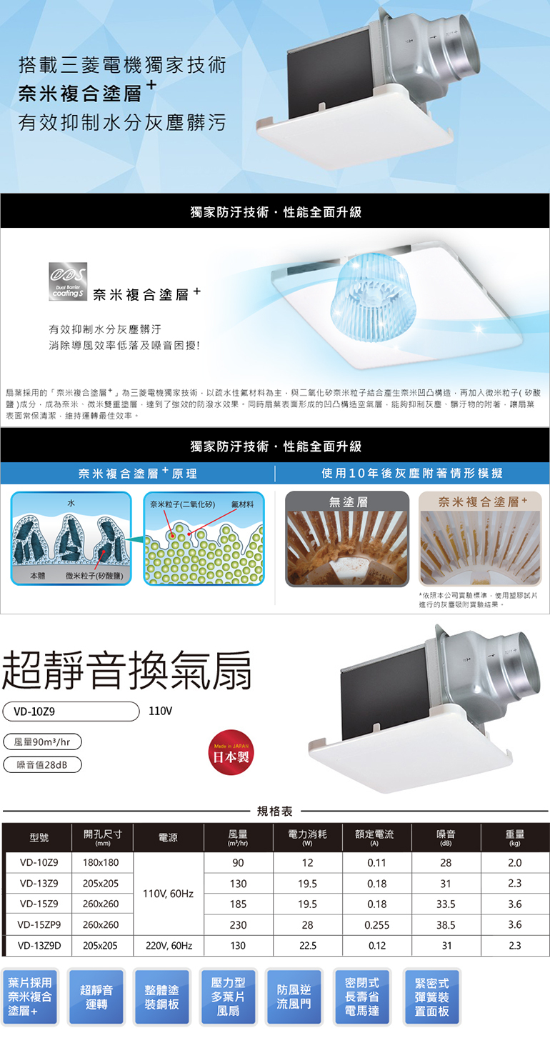 【不含安裝】[MITSUBISHI 三菱]110V 超靜音換氣扇 VD-10Z9-TWN-2