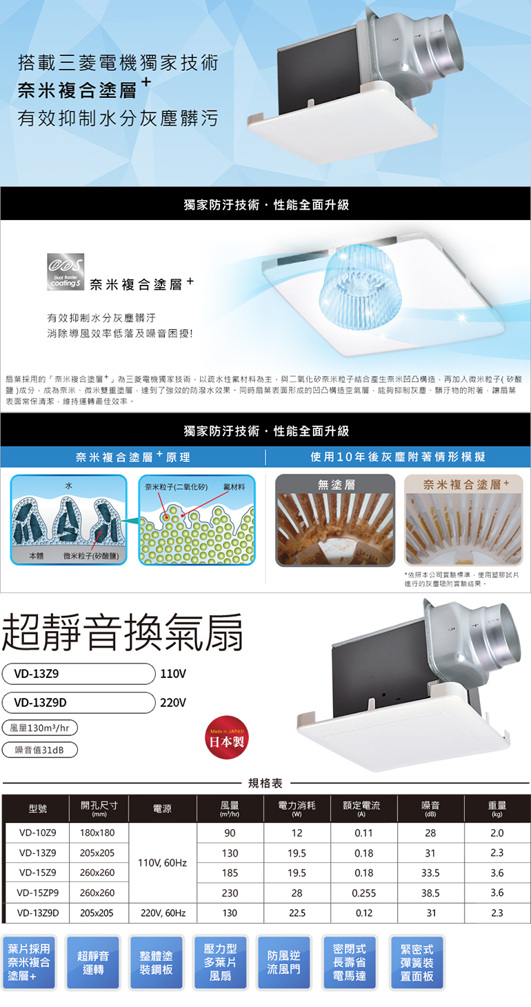 葉片採用奈米複合塗層+