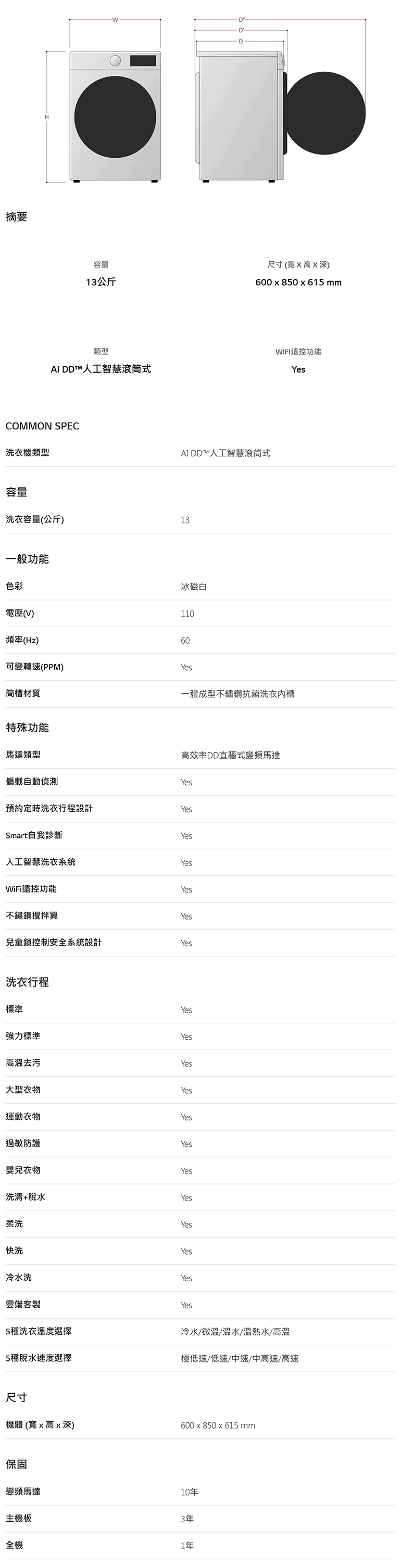 AI DD™ 直驅變頻馬達10年保固:提升洗淨力、更護衣