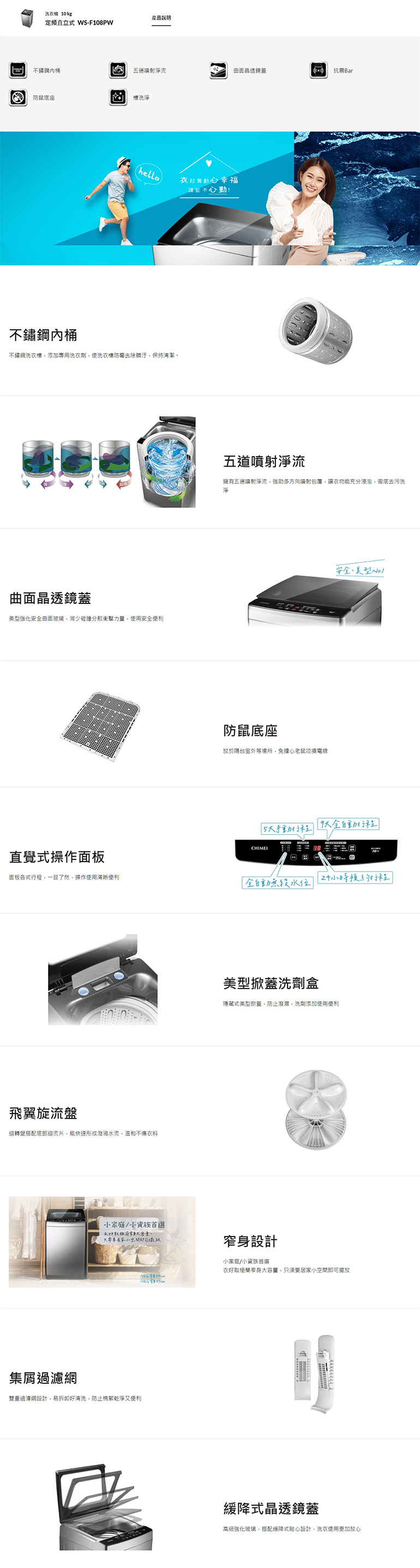[CHIMEI 奇美]10公斤 定頻直立式洗衣機 WS-F108PW
