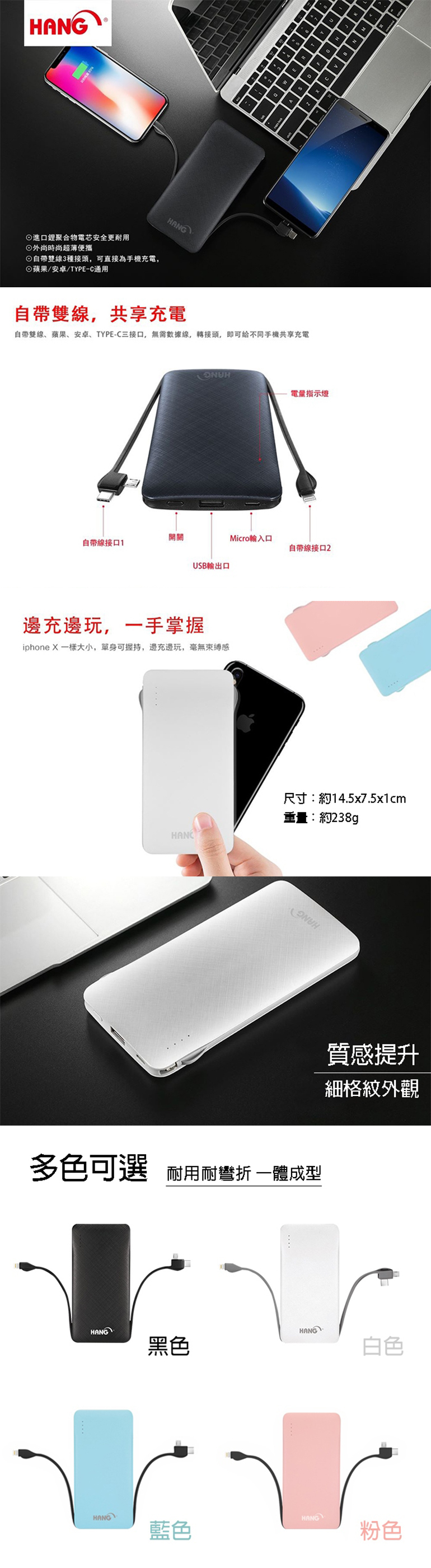 ★ 自帶雙線3種接頭 外出不需帶多條線