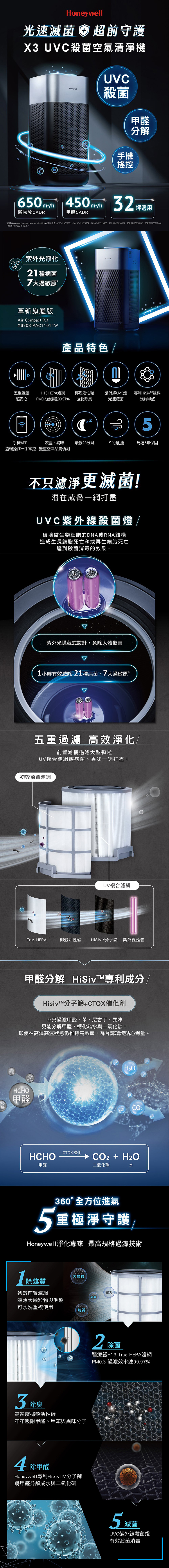 五重過濾最安心,UVC殺菌+HiSivTM專利濾網