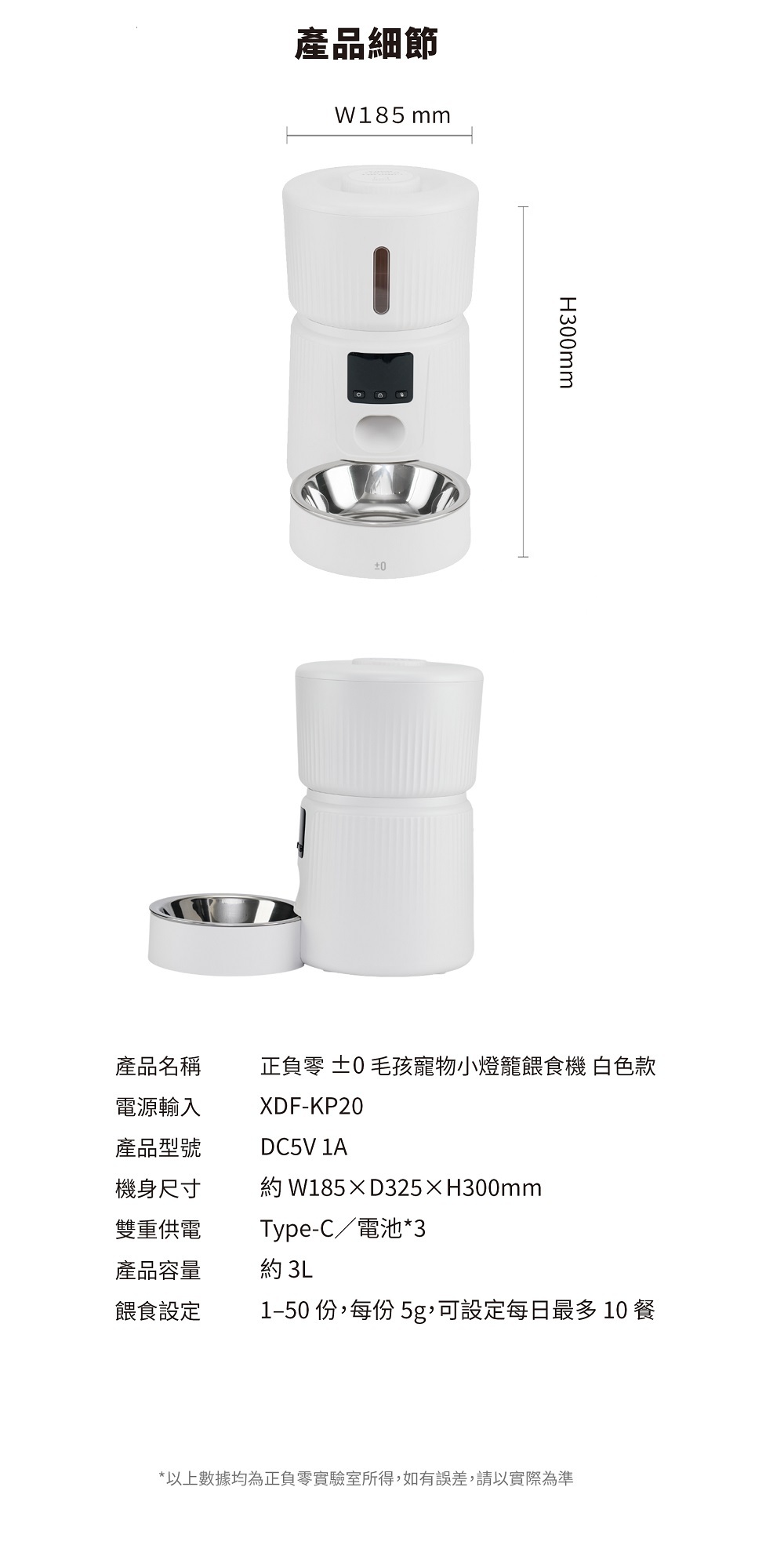 ±0 正負零 3(L) 寵物自動餵食機 XDF-KP20 白色