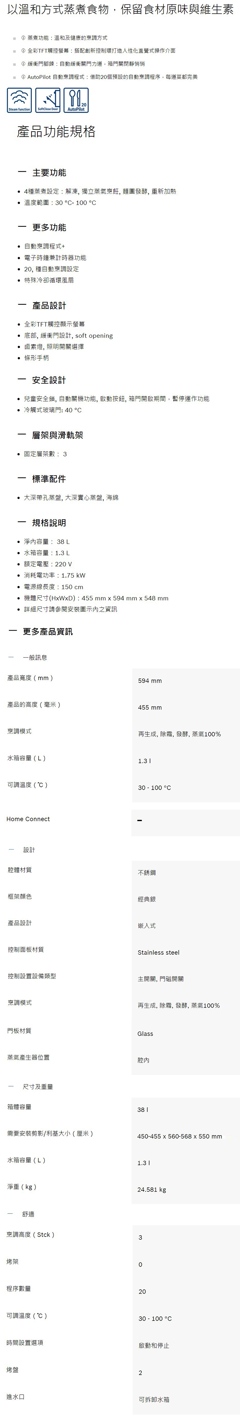 ★ 蒸煮功能:溫和及健康的烹調方式