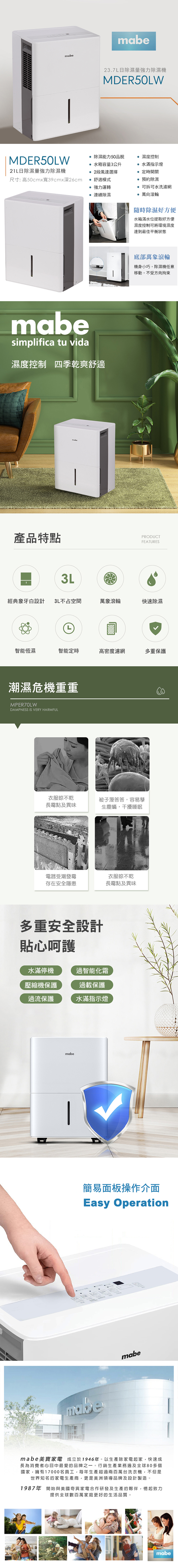 [Mabe 美寶]21公升 強力除濕機 MDER50LW