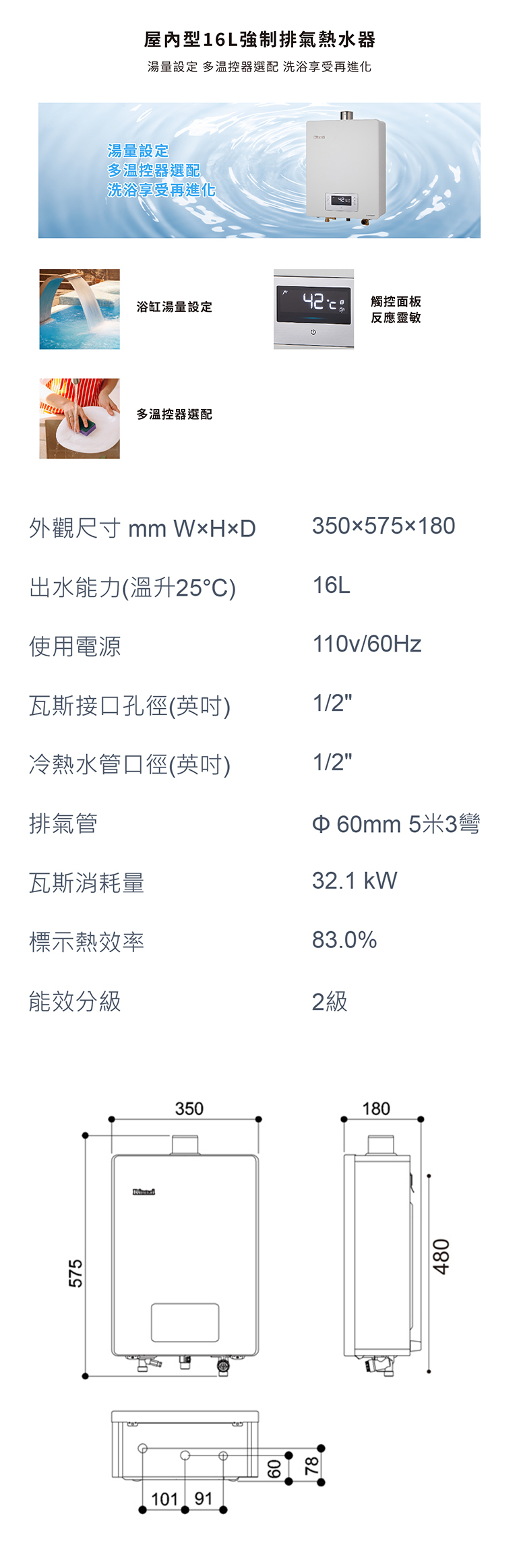 [Rinnai 林內]16公升 屋內型強制排氣熱水器 RUA-C1620WF