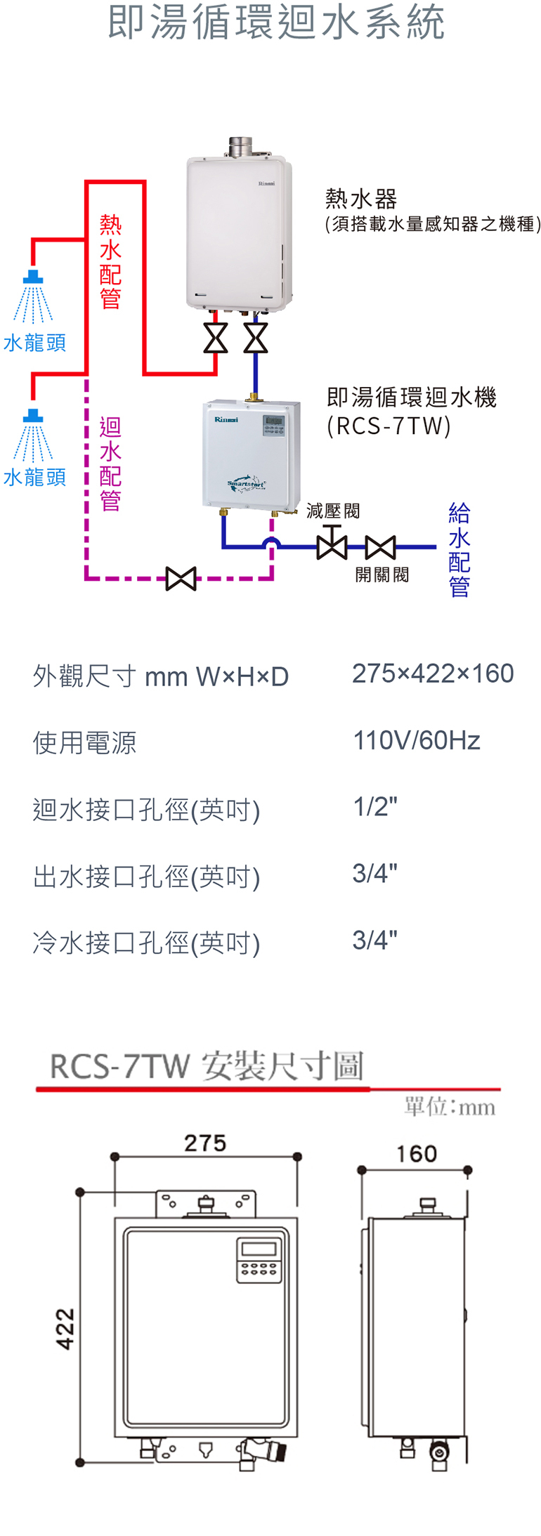 [Rinnai 林內]即熱循環迴水機 RCS-7TW