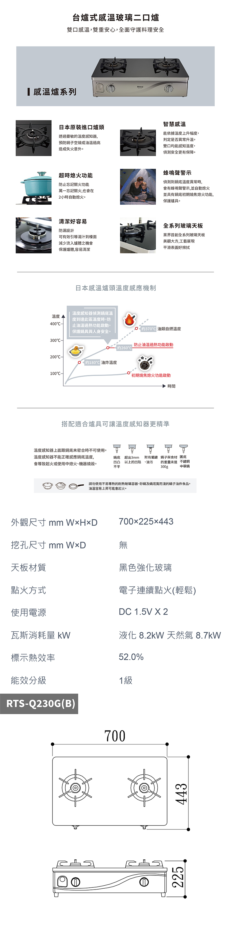 [Rinnai 林內]台爐式感溫玻璃雙口爐 RTS-Q230G(B)
