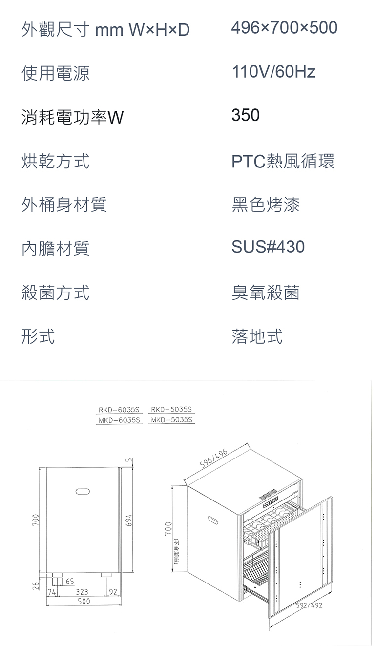 【不含安裝】[Rinnai 林內]落地式臭氧殺菌烘碗機 RKD-5035S