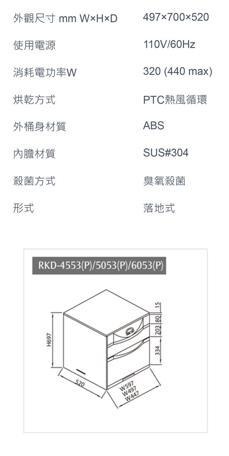 【不含安裝】[Rinnai 林內]落地式臭氧殺菌烘碗機 RKD-5053(P)