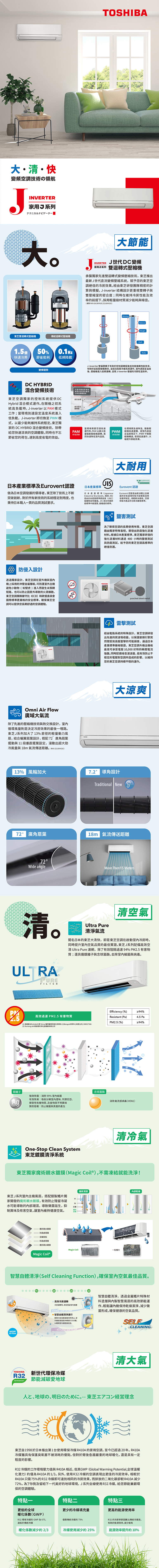 [TOSHIBA 東芝]2-4坪 J系列 1級變頻分離式冷暖冷氣 RAS-08J2AVG2C/RAS-08J2KVG2C
