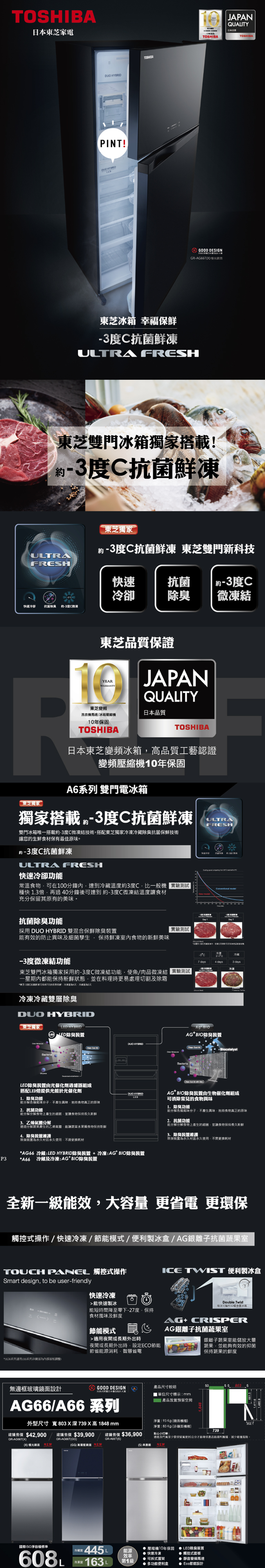 TOSHIBA 東芝 608(L) 1級變頻2門鏡面電冰箱 GR-AG66T-X 送基本安裝【限量特惠品】