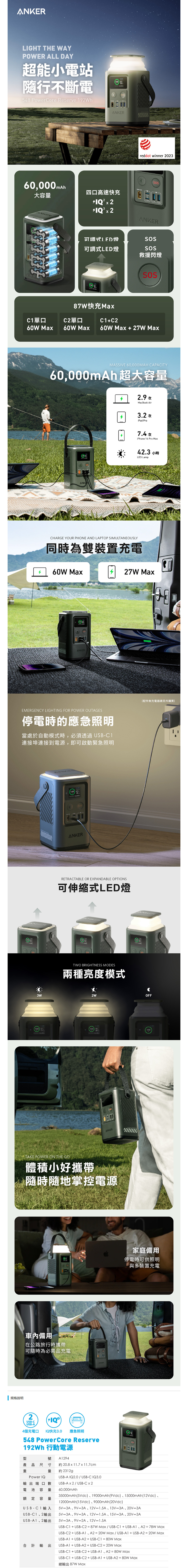 ● 192Wh 60,000mAh大容量供電