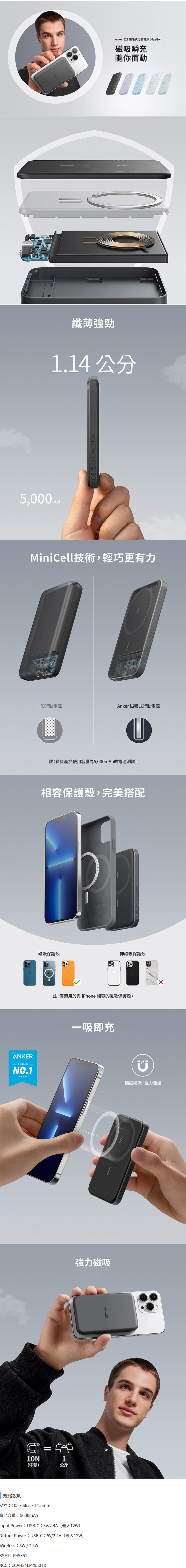 A1610 621 MagGo 5000mAh 超薄磁吸行動電源 石墨黑