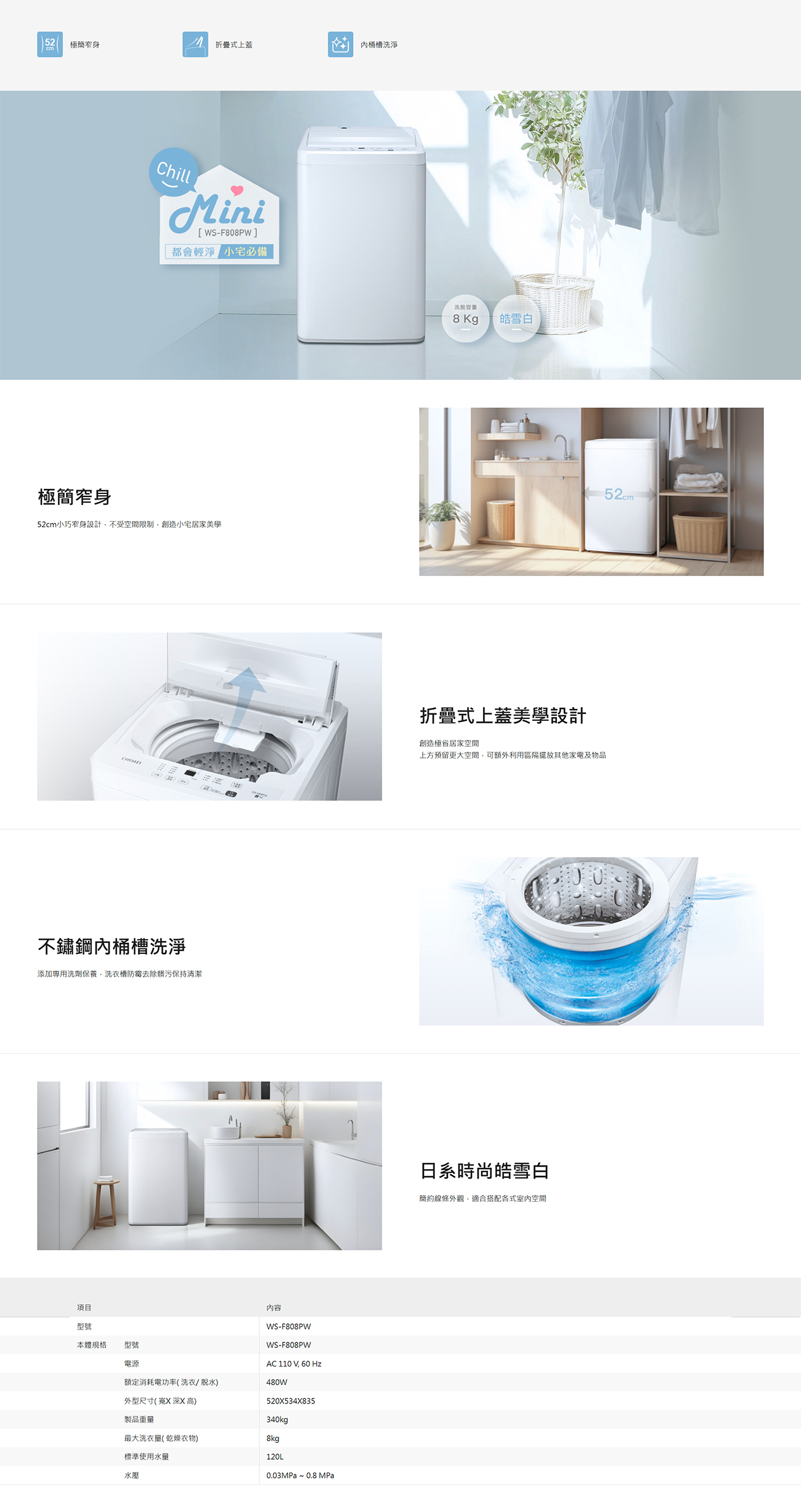 52cm小巧窄身、極簡美