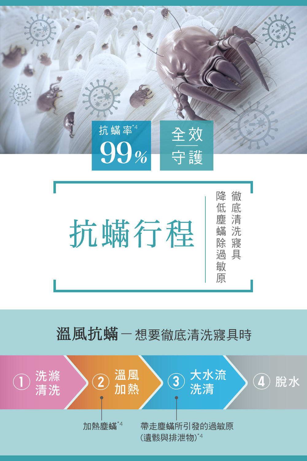■ 溫風抗蟎除菌,65℃低溫抛鬆烘乾