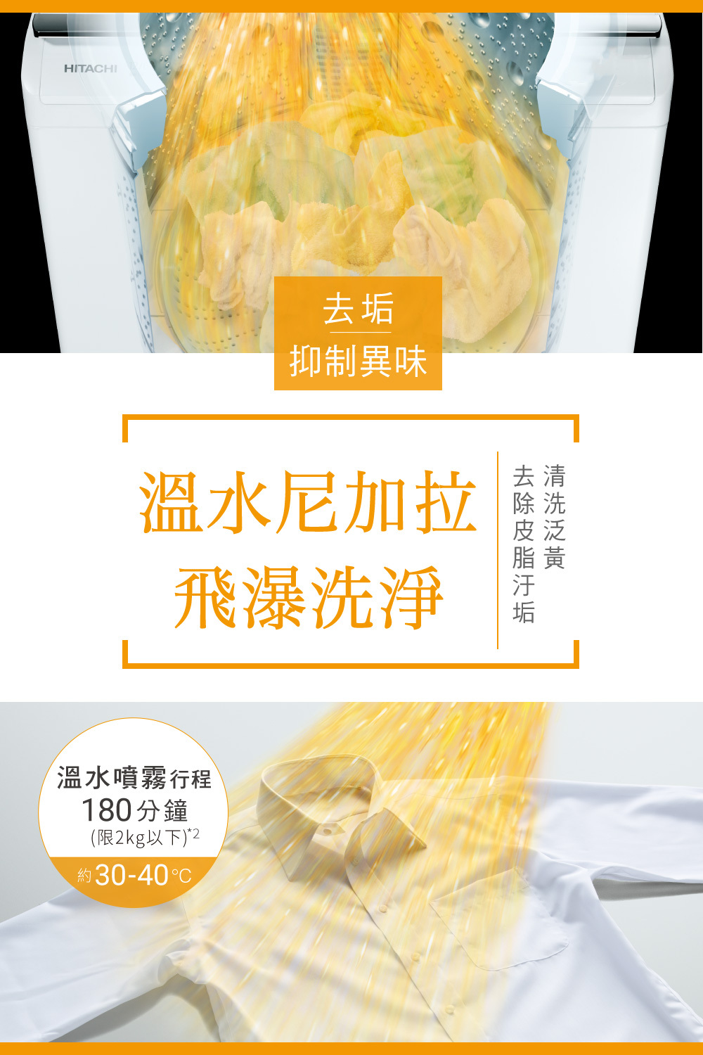 ■ 溫水噴霧搭配飛瀑洗淨防止泛黃